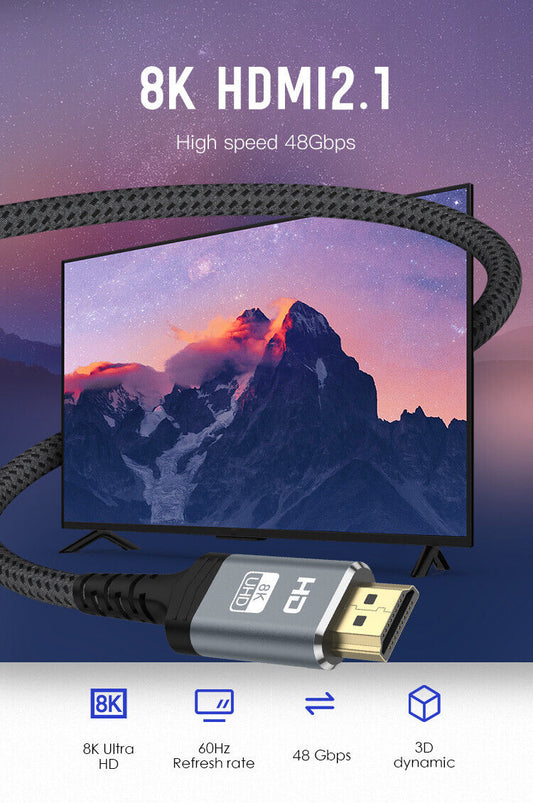 Gold Plated DOEL 8K HDMI Cable 2.1 Version 60/120hz Connector 48Gbps-2M/6.5Feet